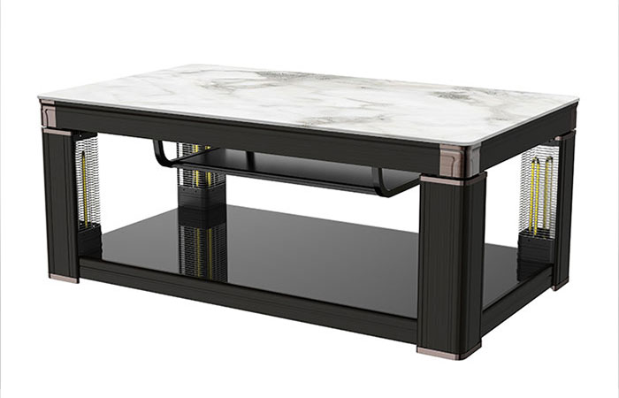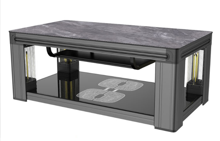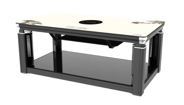 巖板、隱形電磁爐、智能語音,三秒速熱,電鍍轉(zhuǎn)角,中層架,黑木紋色,立柱顯屏,USB插口,收納線盒,雙開關(guān)控制